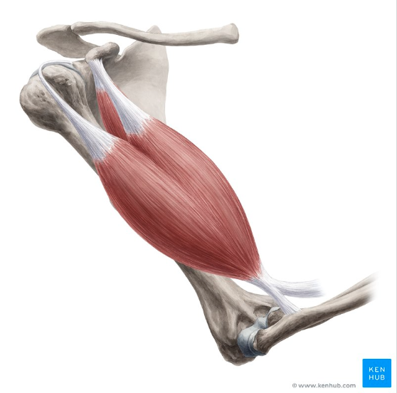 Origin: Infra gelnoid tubercle, Proximal posterior humerous, Distal posterior humerous