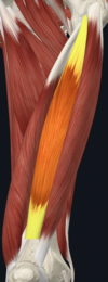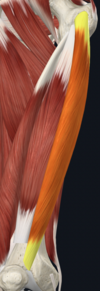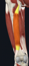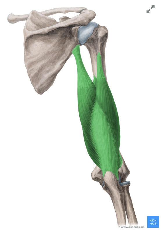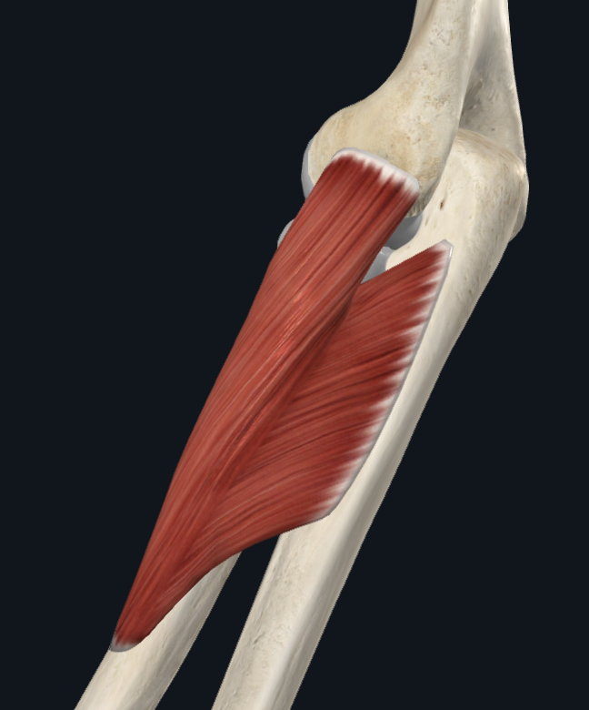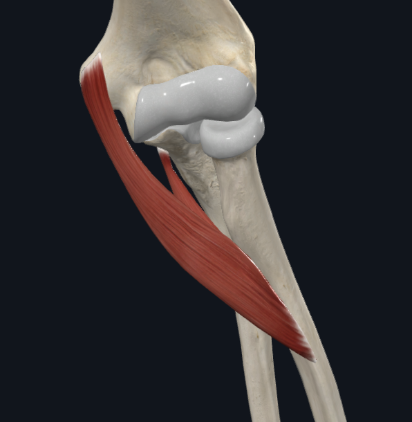 Insertion: Proximal radius, proximal medial ulnar and proximal posterior ulna