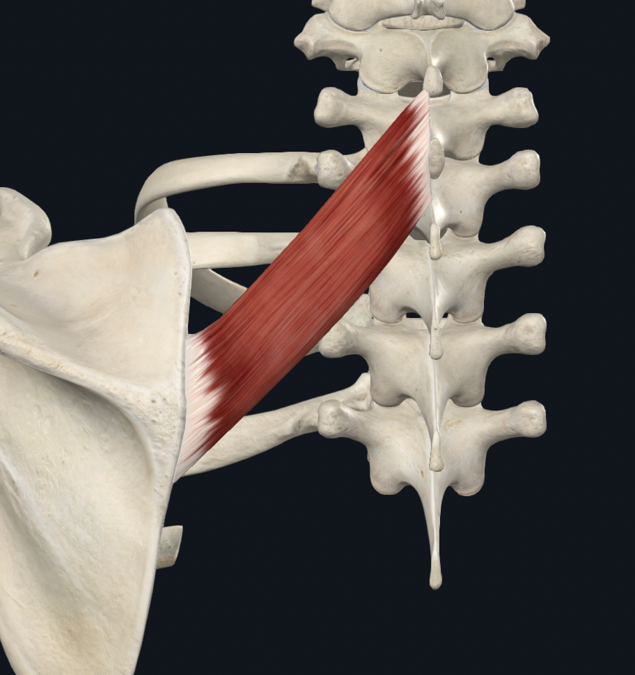 Insertion: Medial border of scapula adjacent to spine of scapula