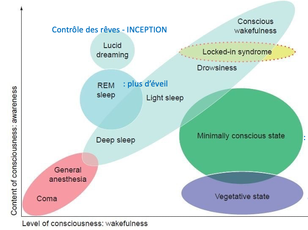 Nommer les 4 états de consciences/vigilence du moins conscient au plus conscient
