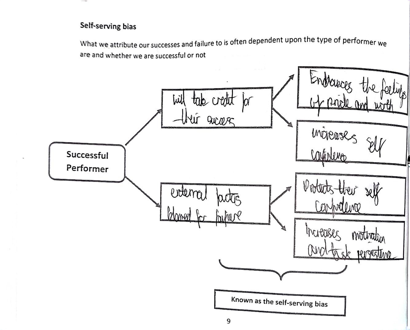 This is because the way in which our behaviour is attributed will affect how a sports person feels about their performance and ultimately our self-esteem. The correct use of this will affect the performers’ ability to maintain motivation and to continue within the sport.
