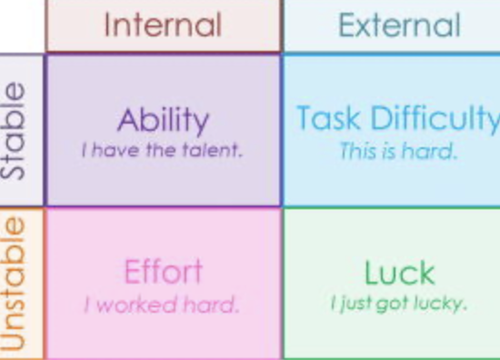 . the reasons for winning can either be within the control of the performer (internal) or out of their control (external) -> causality