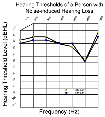 B) It looks like a sensorineural hearing loss in that both thresholds are about the same, but there is a notch at 4000 Hz - the hallmark of noise-induced hearing loss