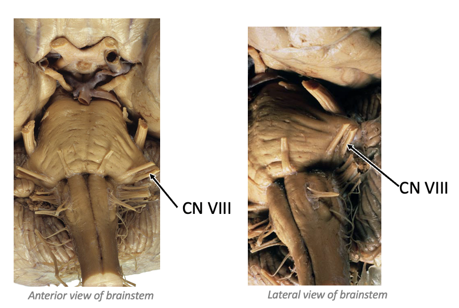How can the vestibulocochlear nerve be identified at the level of the brainstem?