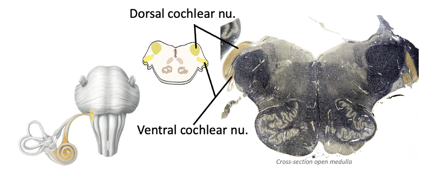 Where are the cochlear nuclei located?