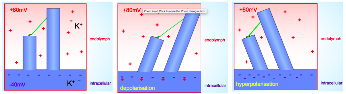 This creates a 120mV electrical gradient to drive cations into the hair cell= depolarises it