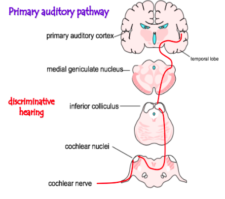 Describe the Primary Auditory Pathway for discriminative hearing