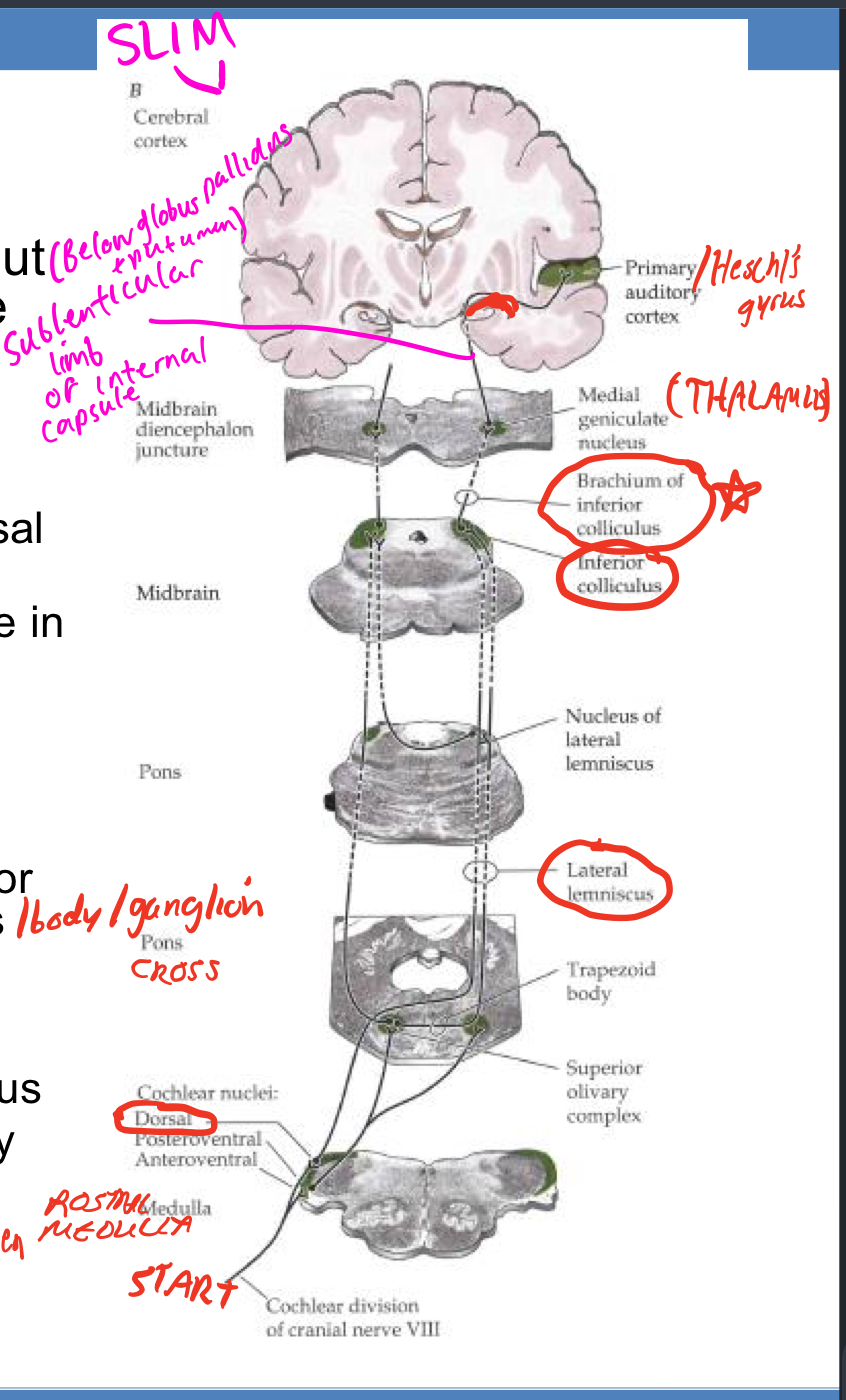 Fibers from MGN will ascend thru the sublenticular limb of the internal capsule and travel to the primary auditory cortex