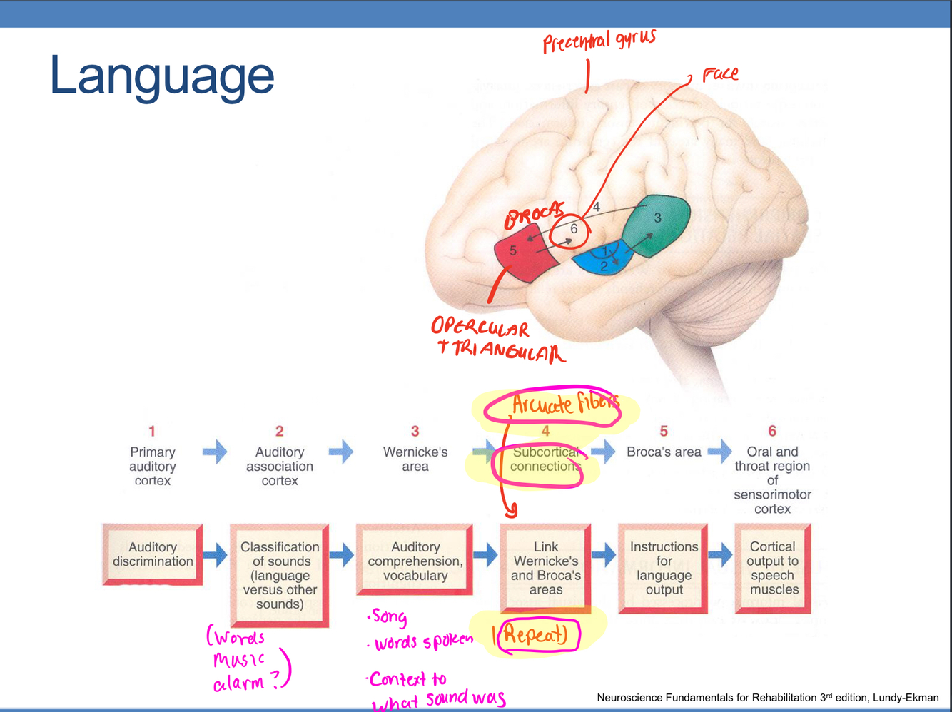 * Lesion of supramarginal gyrus and arcuate fasciculus