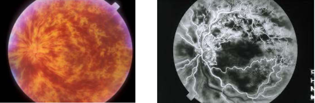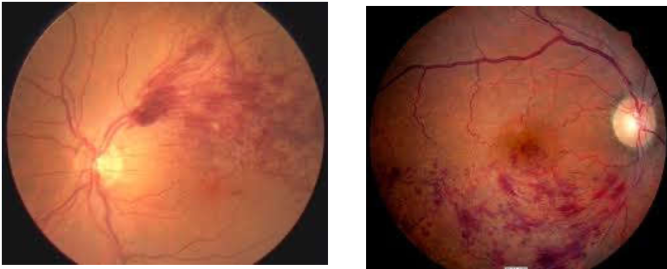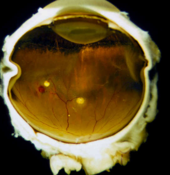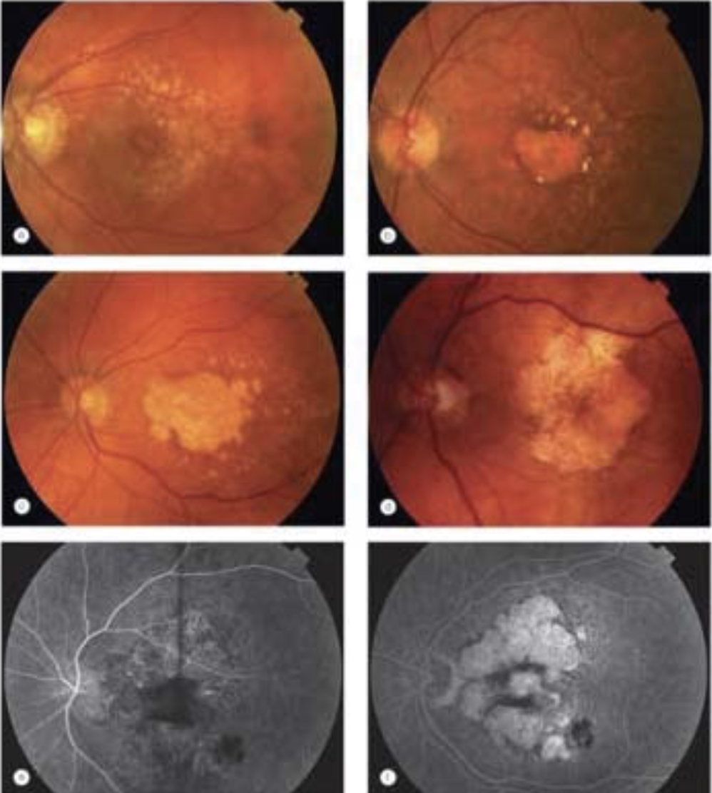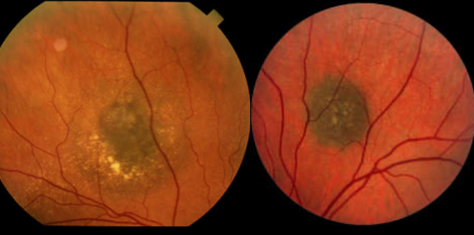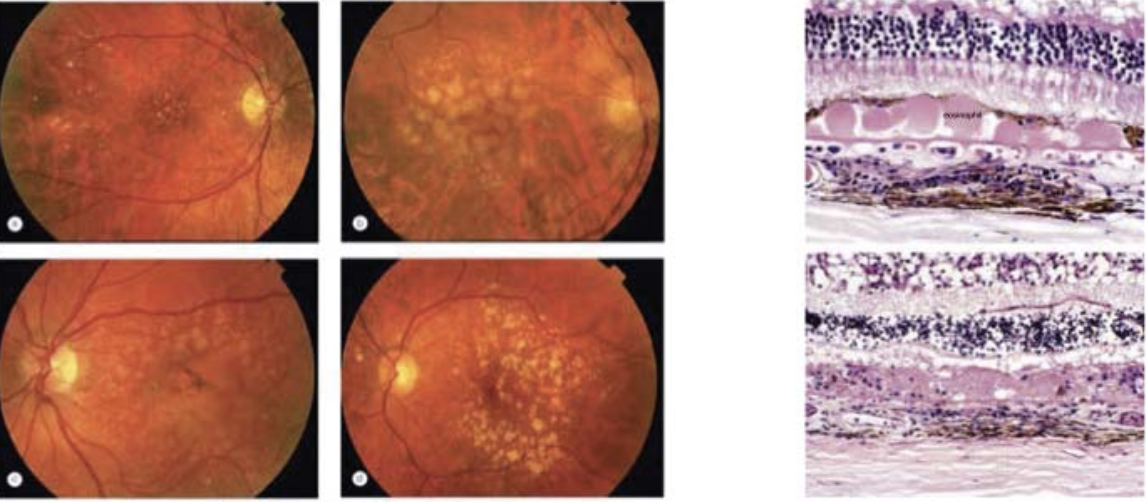 Harte und weiche Drusen -> zw. retinalem Pigmentepithel + Bruch Membran