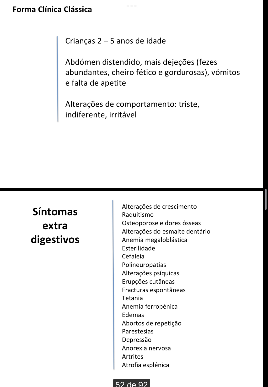Como se manifesta em Crianças 2 – 5 anos de idade ? Quais são os sintomas extras digestivos ?