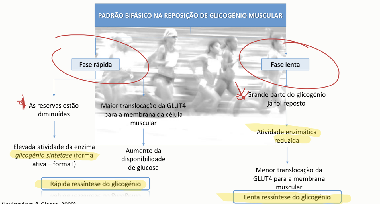 QUAL O PADRÃO BIFÁSICO NA REPOSIÇÃO DE GLICOGÉNIO MUSCULAR, EM FASE RÁPIDA E LENTA .?