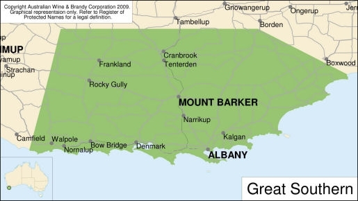 Name the 5 main sub-regions of the Great Southern in South West Australia: