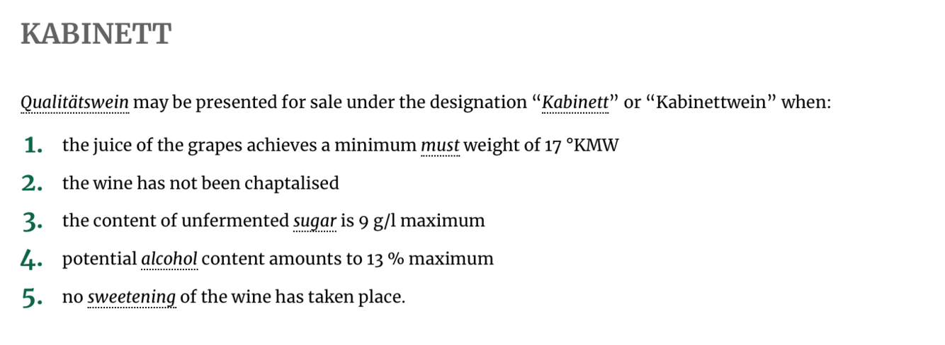 Requirements for Austrian Kabinett