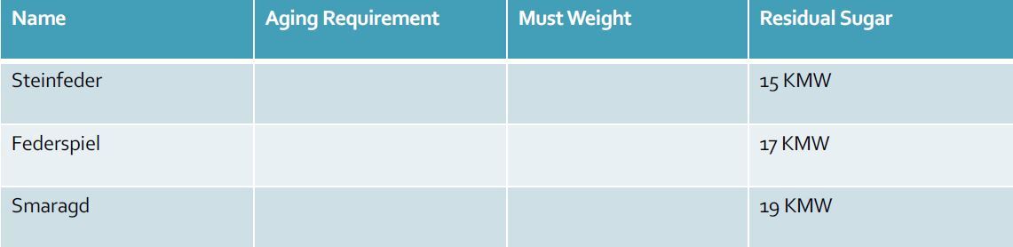 DAC for Gruner Veltliner, Riesling and Roter (Red) Veltliner at the Riedenwein level