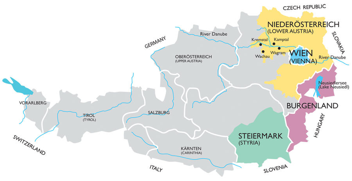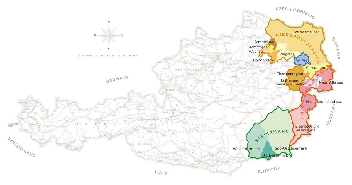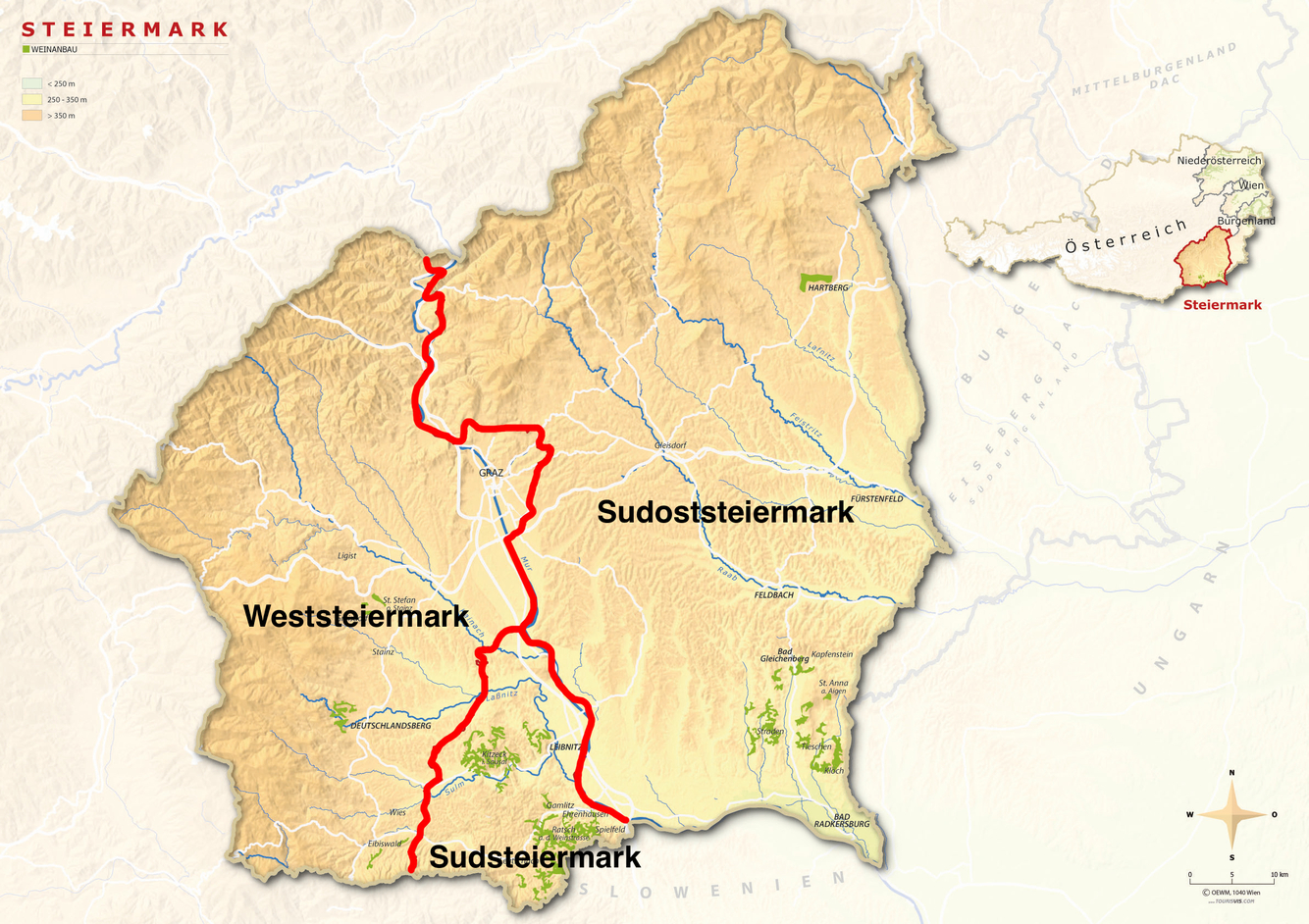 - Steiermark is shown in this map but it is not a part of Weinland.
