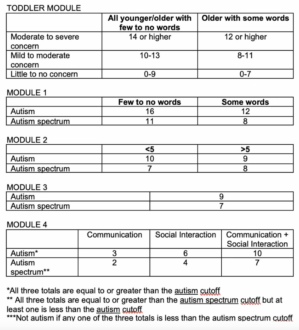 6 reason for high score on ADOS mod 4 other than ASD