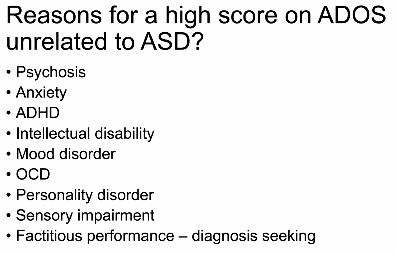 Reasons for high score (false positive) in ADOS other than ASD?