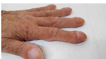 hippocratisme digital / clubbing fingers: causes multiples dont cardiopathie congénitale cyanogène, pulmonaires (fibrose, néoplasie), GI (malade de Crohn, cirrhose, néoplasie)