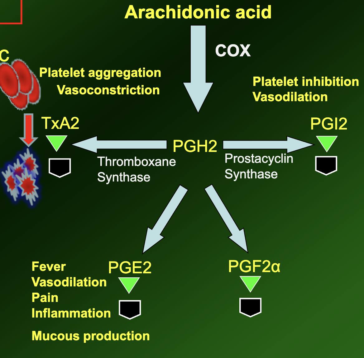PGE2 - Mediated Fever, Pain, Inflammation, Vasodilation, Mucous Production (Protective).