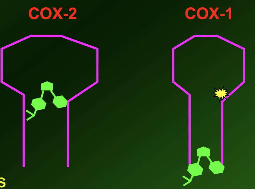 Made them bulkier so they could only reach the binding site of COX 2 and did not fit in COX 1.
