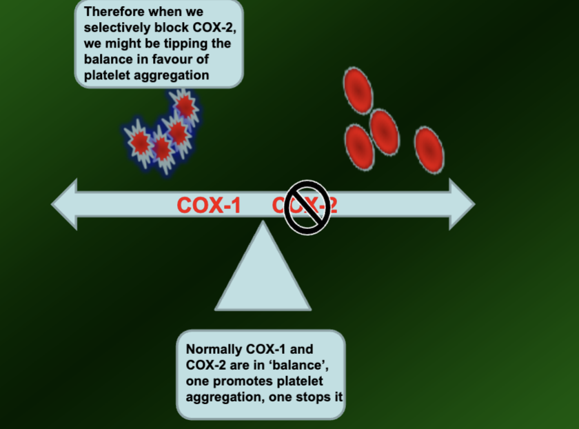 What what the pharmacological reasoning why selective COX-2 inhibitors caused heart attacks?