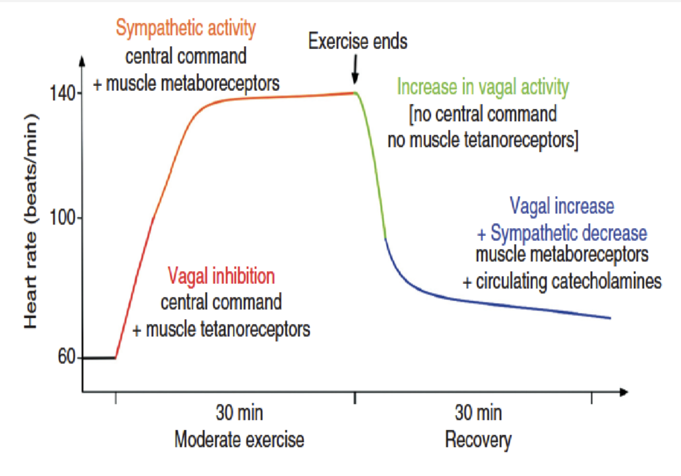 Changes in cardiac and peripheral autonomic control during exercise come from three main mechanisms: