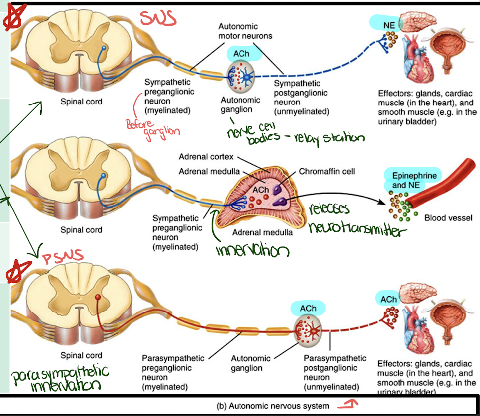 post: ganglion to effector