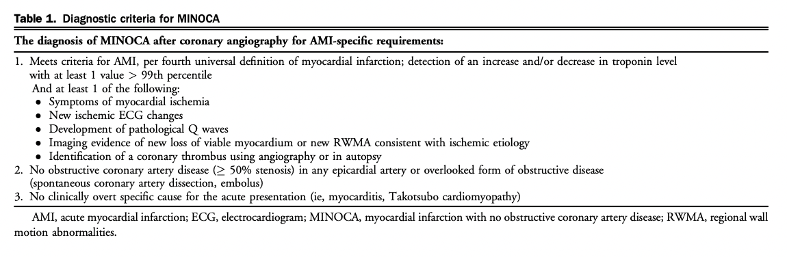 Quels sont les critères dx du MINOCA?