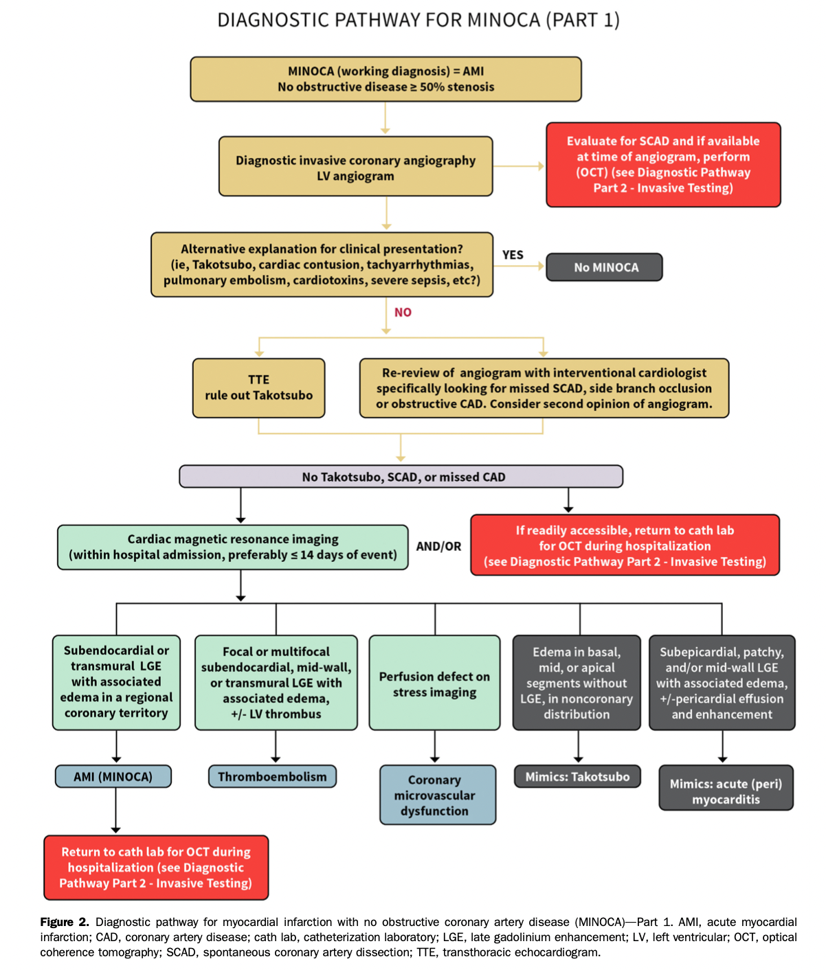 -> On doit R/O myocardite, Takotsubo et NSTEMI type 2 qui ne sont pas des causes de MINOCA mais plutôt des imitateurs.