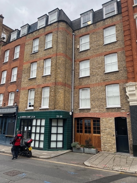 What are the listing details of Cloister Court (No. 22-26 Farringdon Lane)?
