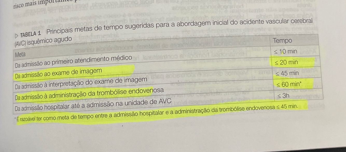 Não fazer tratamento específico até o exame de imagem chegar, nas primeiras 6 horas o AVC isquêmico pode ser normal na Tc