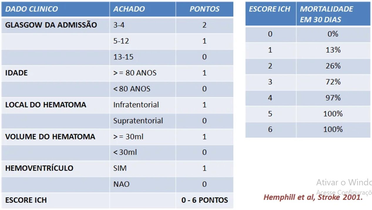 Descreva a escala de ICH
