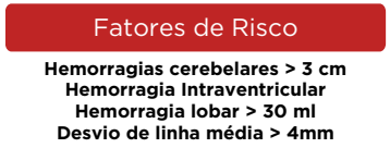 - TC de crânio (> 48h da admissão): 6 ml ou 33% do volume total ou sinais de HIC