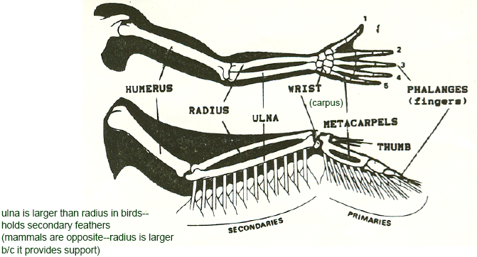 There is no weight-loading need so the radius is smaller while flight feathers need a large bone to attach to, so the ulna is bigger