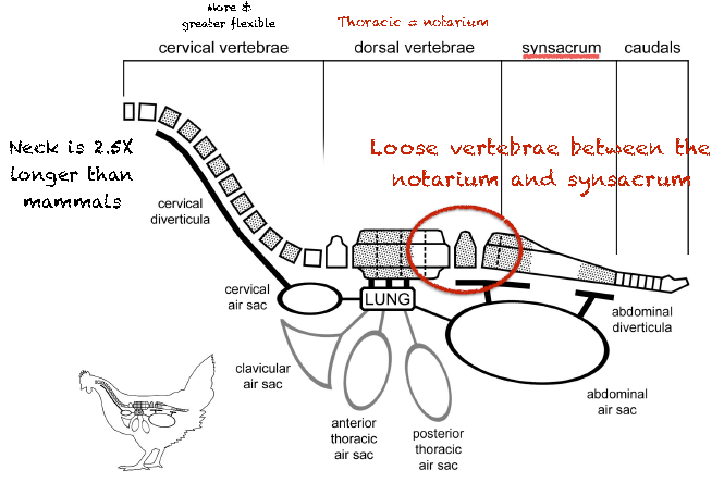 They have a loose vertebrae in between the notarium (thoracic) and synsacrum