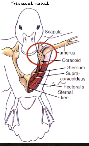 The pectoralis muscle is a downstroke muscle–it is larger than the supracoracoideus (upstroke) because birds need more power to fight wind and gravity during downstrokes