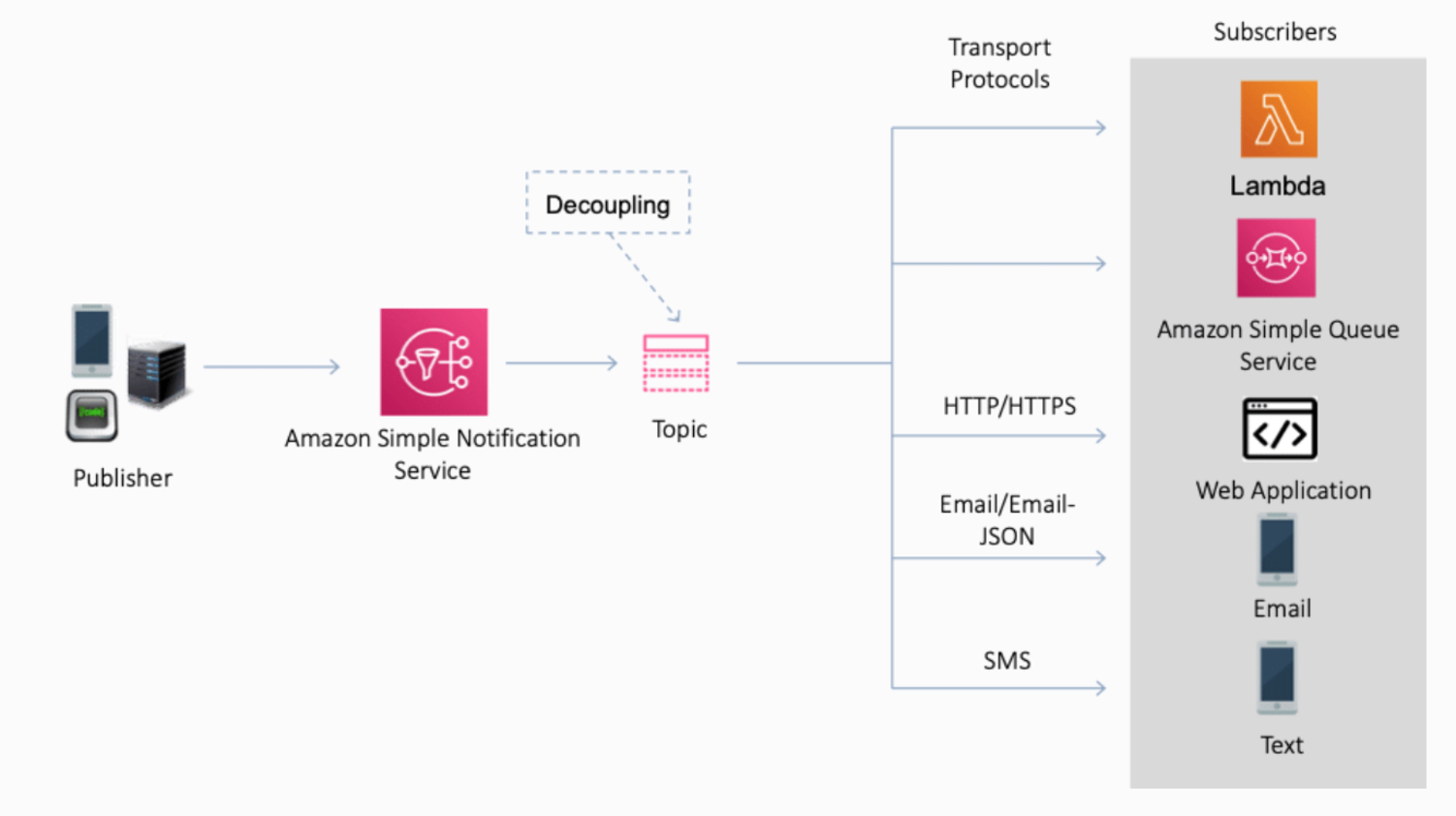 Amazon SNS allows applications to send time-critical messages to multiple subscribers through a “push” mechanism, eliminating the need to periodically “poll” for updates.