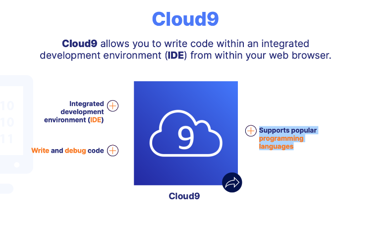 Cloud9 allows you to write code within an integrated development environment (IDE) from within your web browser.
