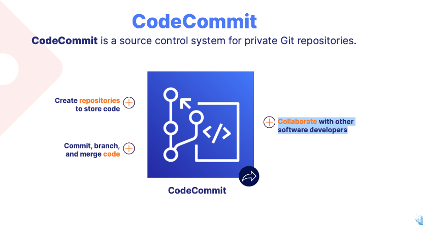 CodeCommit is a source control system for private Git repositories.