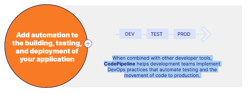 When combined with other developer tools, CodePipeline helps development teams implement DevOps practices that automate testing and the movement of code to production.