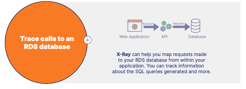 X-Ray can help you map requests made to your RDS database from within your application. You can track information about the SQL queries generated and more.