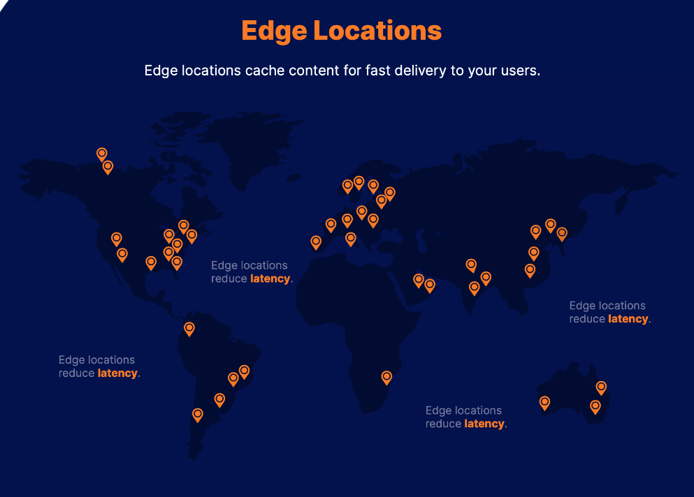 Edge locations cache content to fast delivery to your users. It’s made possible through AWS CloudFront. It’s recudes latency (Low Latency is good).