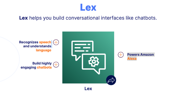 Lex helps you build conversational interfaces like chatbots.