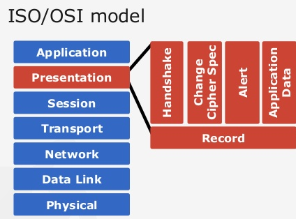 TLS fits in the Presentation layer where the presentation layer is used for encryption and compression.