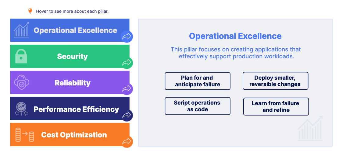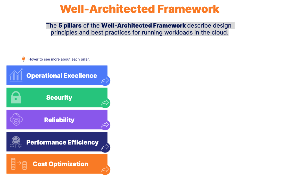 The 5 pillars of the Well-Architected Framework describe design principles and best practices for running workloads in the cloud.