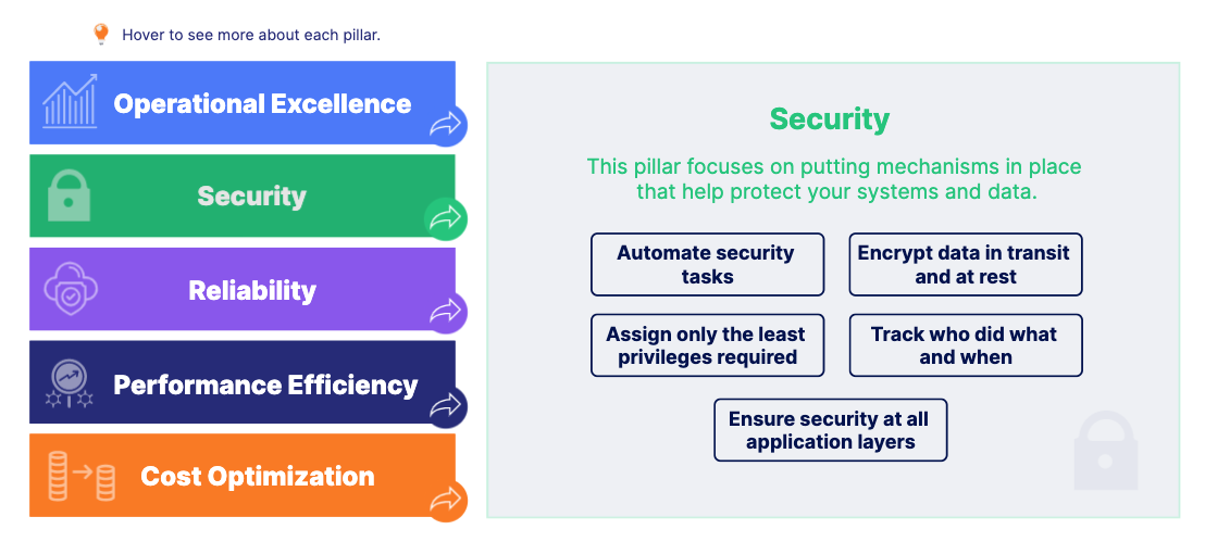 This pillar focuses on putting mechanism in place that help protect your systems and data.