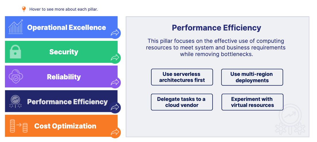 This pillar focuses on the effective use of computing resources to meet system and business requirements while removing bottlenecks.