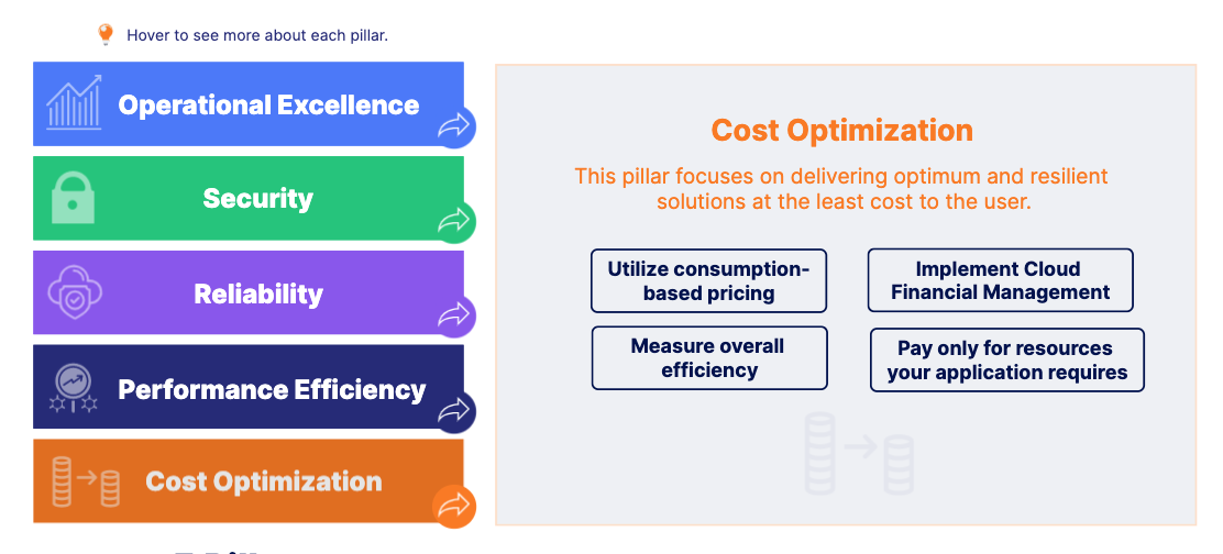 What does the Cost Optimization entail(Well-Architected Framework)?