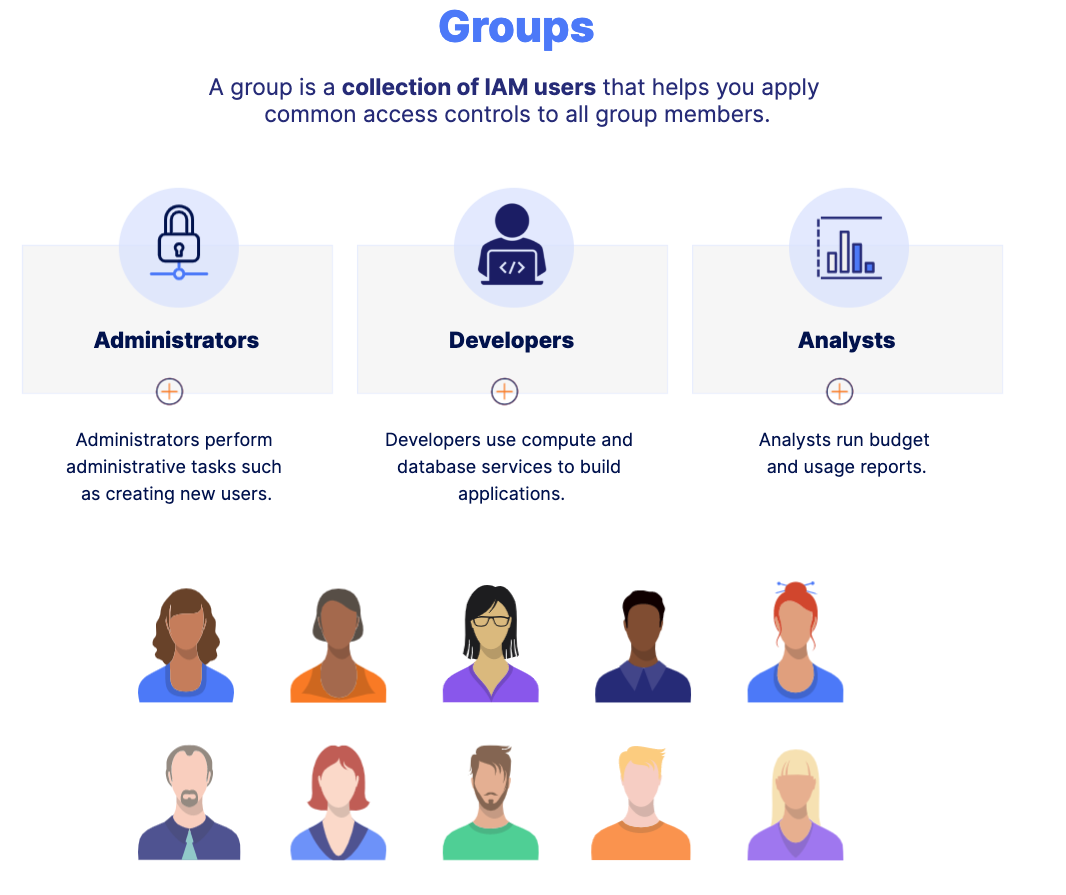 A group is a collection of IAM users that helps you apply common access controls to all group members.
